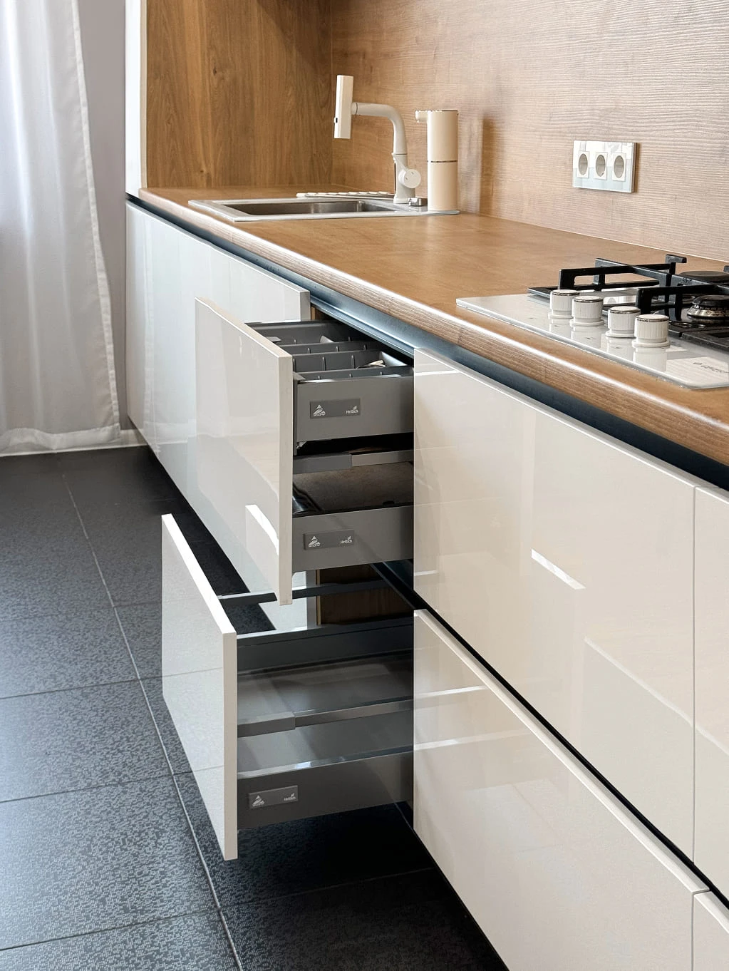 «В мае 2021 года задумались о ремонте и обновлении нашей кухни. Решили, новая кухня должна быть выполнена из современных и практичных материалов, на столешнице и фурнитуре не экономим. Кухонный гарнитур фабрики «ЗОВ» заказали в салоне мебели «Альянс», Белгородский пр-т 114. Все сотрудники салона добросовестно, слажено, по возможности быстро выполняли свой фронт работы. Около 1.5 месяца ушло на разработку индивидуального проекта с выездом замерщика и дизайнера, изготовление элементов гарнитура, доставкой, сборкой, изготовлением каменной столешницы. Выражаю благодарность дизайнеру Косовой Н.В., которая все это время работала с нами: предложила на выбор несколько дизайн-проектов из разных материалов, соответственно разной стоимостью, объяснила достоинства и недостатки каждого из них. Остановились на каркасах ДСП и акриловых матовых фасадах с алюминиевыми ручками. Цветовая гамма - широкая, есть из чего выбрать. Мы довольны своей покупкой, всё удобно, рационально, качественно . Рекомендую.»