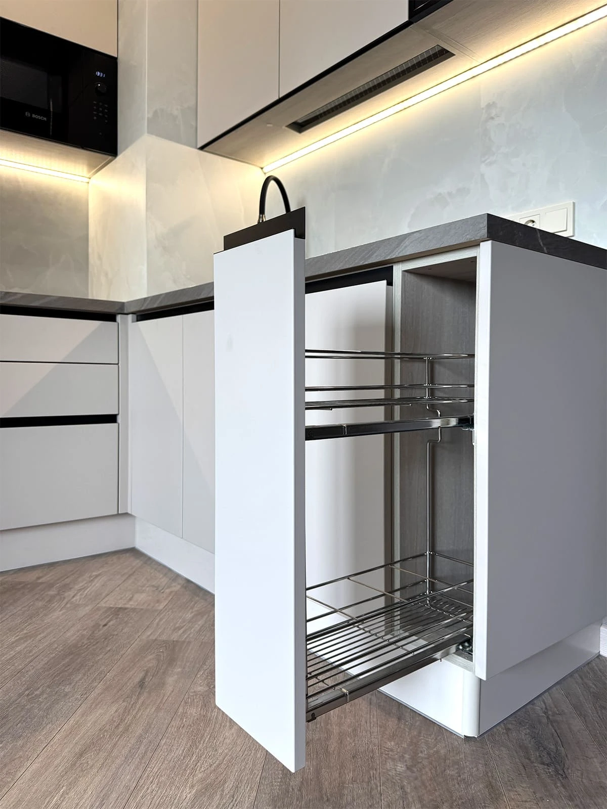 «Заказали кухню в апреле 2019 года. Долго ждали, и наконец, дождались. При сборке выяснилось, что ошиблись конструкторы при проектировании пенала, который должен был обойти выступ стены из ГКЛ, закрывающий трубы отопления. Столешница так же оказалась на 1 см короче (вопрос к замерщику). Рекламацию приняли, но из-за кадровых изменений процесс затянулся. После очередного обращения за дело взялась менеджер Гульнара, и процесс пошел скоро. Она решила вопрос по замене пенала и столешницы за счет фирмы. Все довольно быстро было готово, но тут пандемия. Пришлось еще несколько месяцев ждать доставку и сборку. На сегодня наконец-то все отлично. Кухня собрана, радует глаз. Молодцы ребята-сборщики, сделали все четко, быстро и главное, не повредили мойку при демонтаже. Спасибо!»